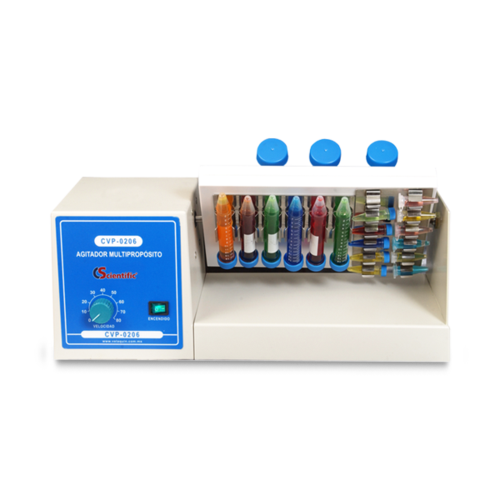 Velocidad ajustable y plataforma magnética con clips que permite utilizar tubos de diferentes capacidades.