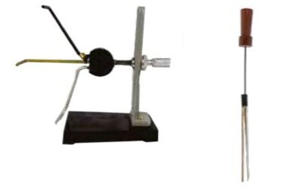 Base metálica y varillas de aluminio, cobre y bronce.
