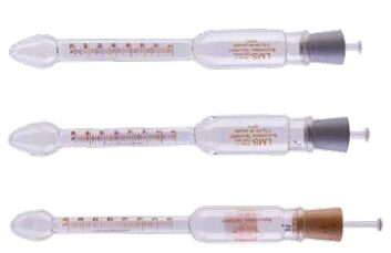 Método gravimétrico para 2.5g de muestra, bulbo cerrado con área para identificación, cuello de 17/18mm de diámetro.