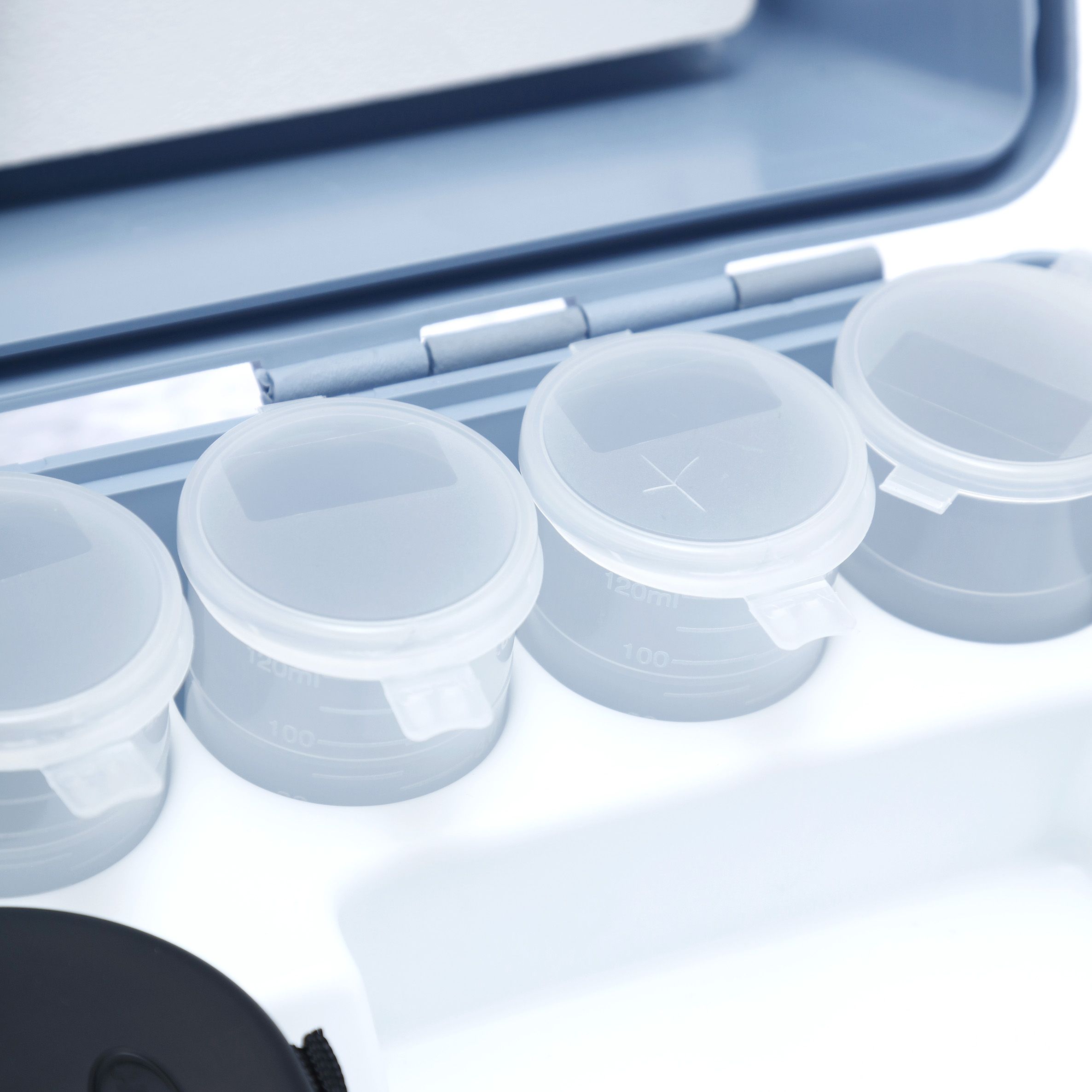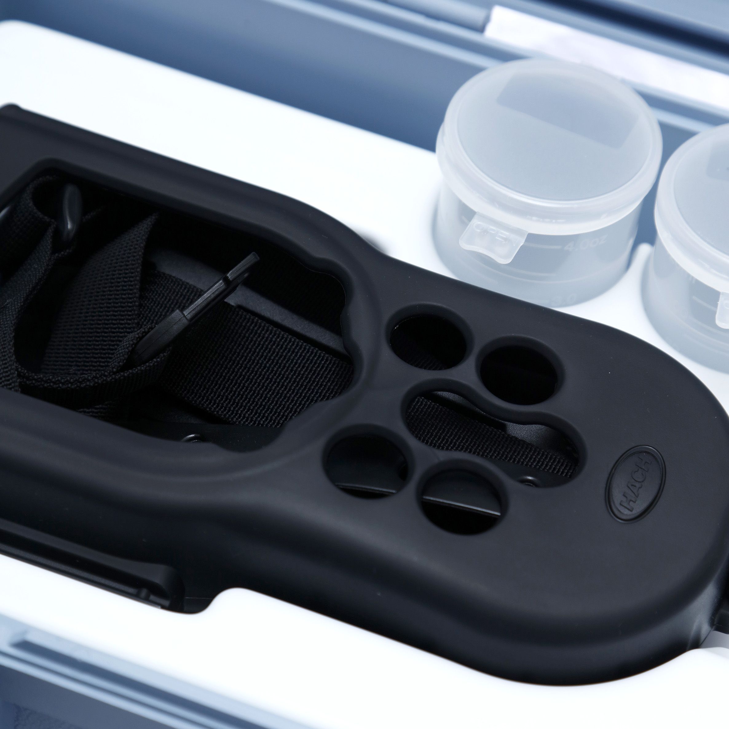 Diseñado para contener los modelos DR2800, DR2700 ó DR1900, funda protectora y adaptadores, celdas cuadradas de 1 pulgada, 2 pipetas y suministro de alimentación.
