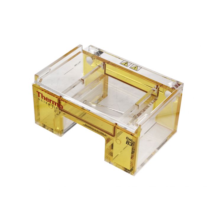 Se suministra con cámara de buffer; tapa con cables de alimentación acoplados; bandeja para geles y 2 peines de 12 y 20 dientes de doble cara (1.0/1.5mm de espesor).