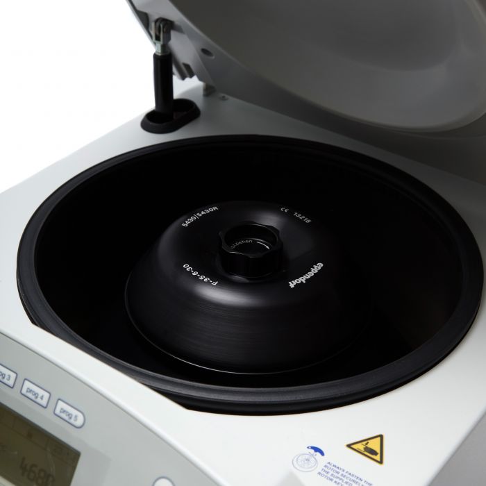 Rotor ángulo fijo (F-35-6-30); velocidad máxima de 7,830 rpm, FCR máxima de 7,745 xg.