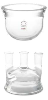 La jarra de reacción tipo Kettler o matraz de reacción está compuesta de la base y la tapa con 3 o 4 juntas; está fabricada en vidrio de borosilicato. La base es de pared reforzada con 4.8 mm de grosor, su fondo es curvo y acepta tapas con borde de 101 mm. La tapa está configurada para 3 o 4 juntas de diferentes entradas; la tapa con 4 juntas tiene una junta destinada para introducir un termómetro.