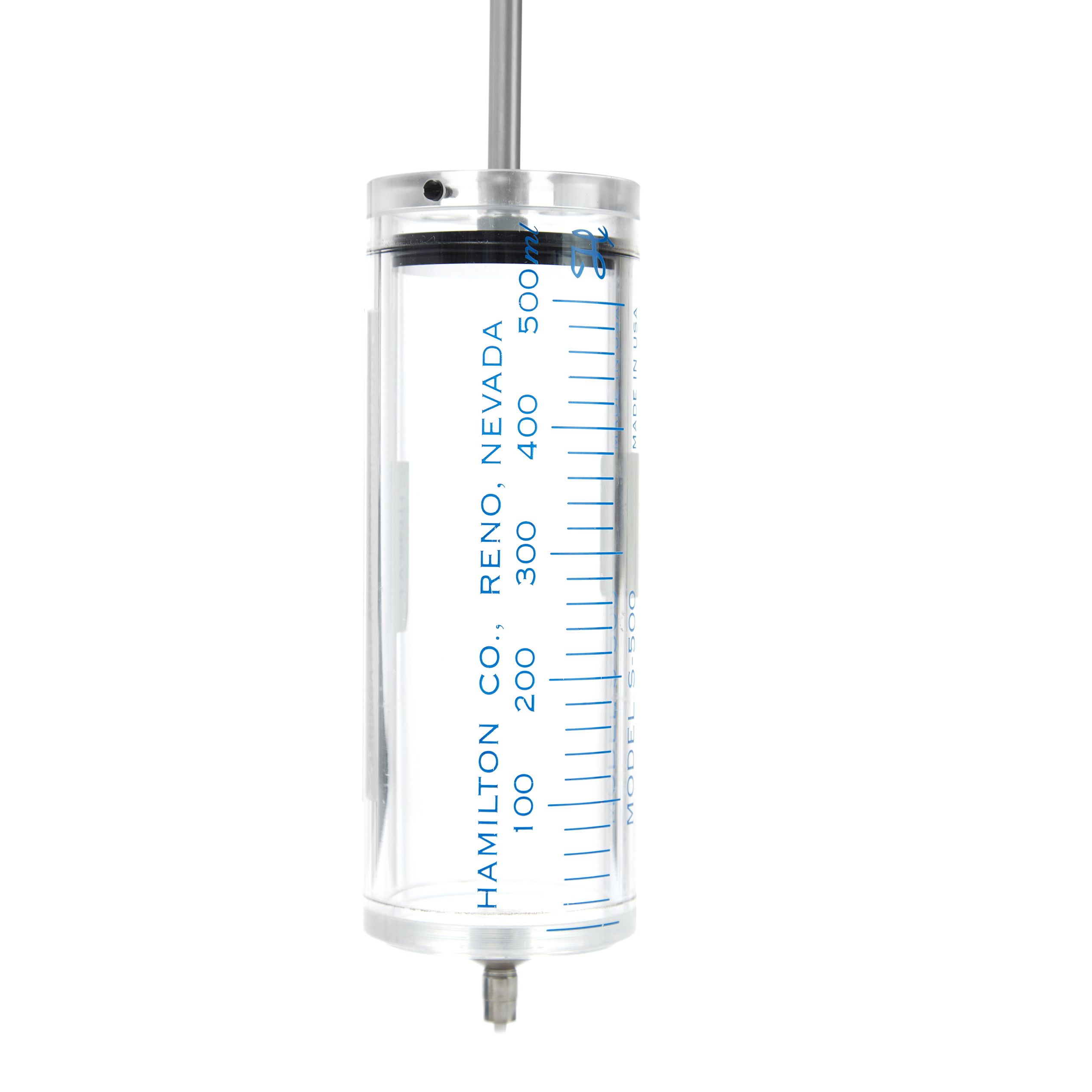 Jeringa de 500mL con terminación TLL (Luer Lock de PTFE).