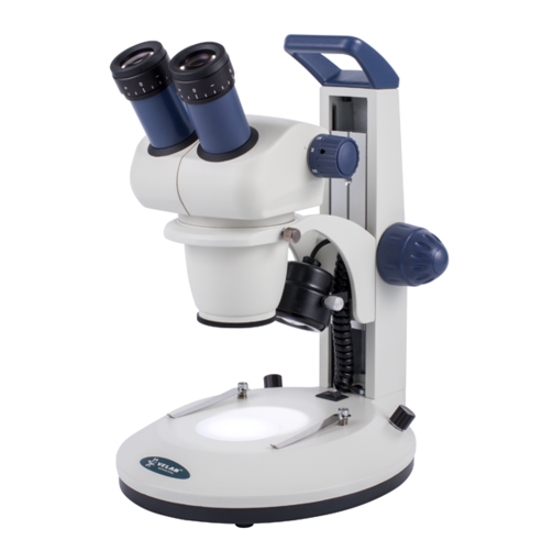 Microscopio ideal para educación superior, investigación e industria. Equipo versátil, útil en procesos de producción o inspección de calidad de productos industriales gracias a su sistema zoom. Cuenta con diseño Greenough que permite la observación tridimensional de insectos. Para disección y clasificación de organismos en entomología y taxonomía, así como en ganadería para la observación y selección de embriones viables.