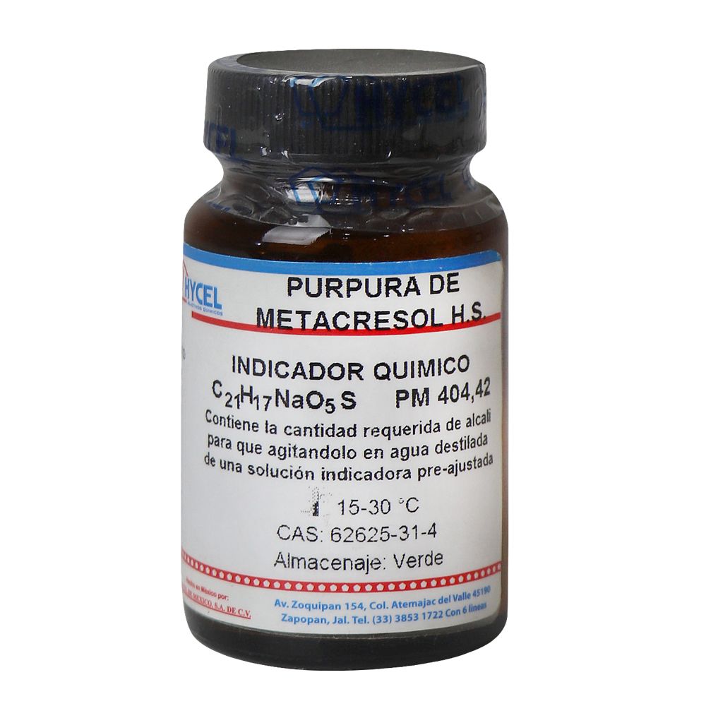 PURPURA DE METACRESOL H.S.,en presentaciones de 1 g.,5 g. y 10 g., marca HYCEL. Peso molecular: 404.42. CAS: 62625-31-4.